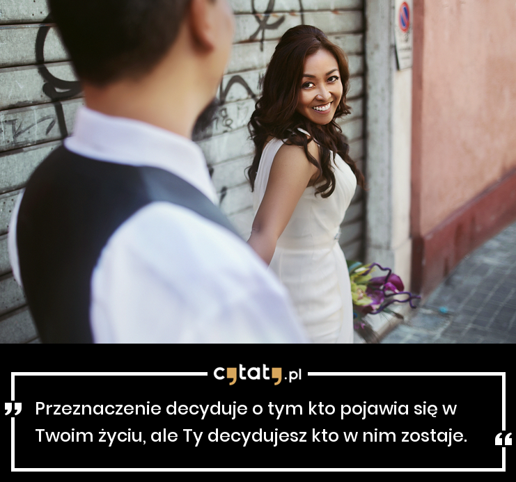 Przeznaczenie decyduje o tym kto pojawia się w Twoim życiu, ale Ty decydujesz kto w nim zostaje.