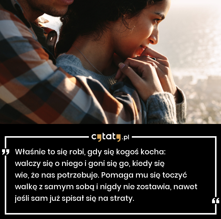 Właśnie to się robi, gdy się kogoś kocha: walczy się o niego i goni się go, kiedy się wie, że nas potrzebuje. Pomaga mu się toczyć walkę z samym sobą i nigdy nie zostawia, nawet jeśli sam już spisał się na straty.